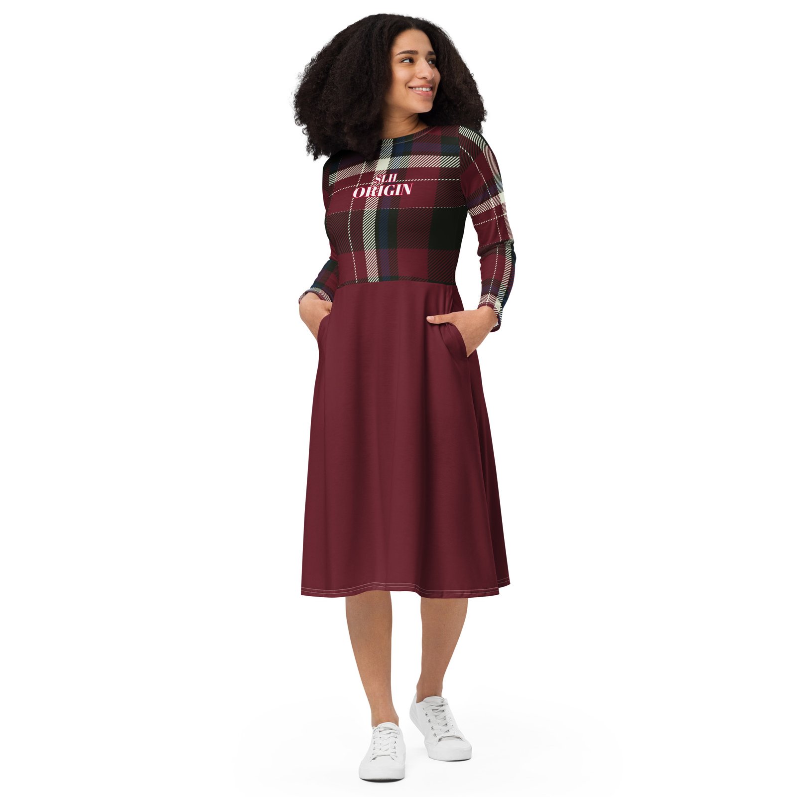 Meet your new favorite dress! Its soft fabric and flattering cut will ensure you feel comfortable and feminine all day long. Plus, the fitted waist and flared bottom part of the dress will accentuate the wearer’s naturally beautiful silhouette. The best part about the dress? It. Has. Pockets.